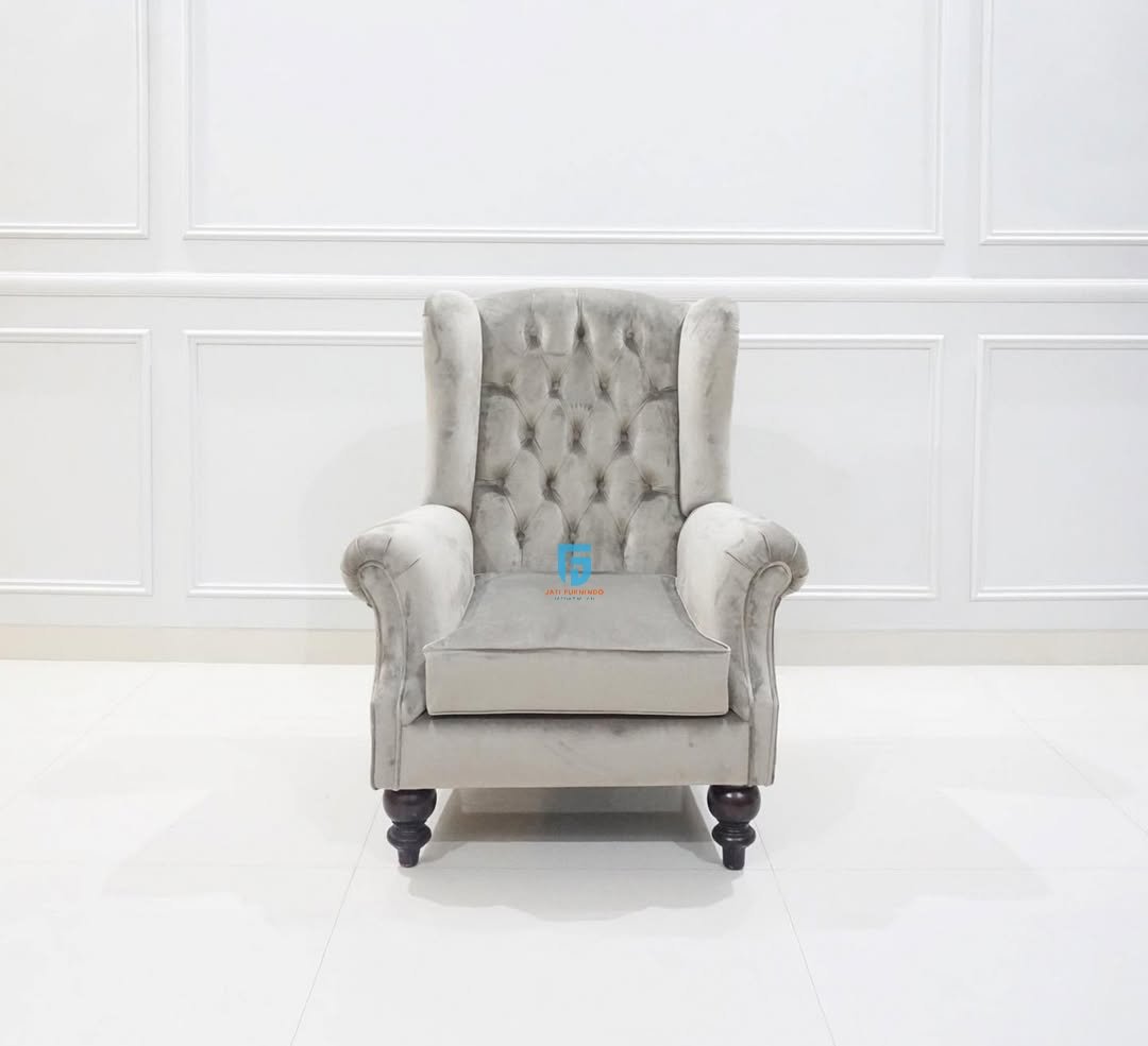 Kursi sofa single Chester, atau sering dikenal sebagai Chesterfield chair, merupakan salah satu jenis furnitur klasik yang tidak pernah kehilangan pesonanya. Dengan desain khas yang mewah dan detail yang unik, kursi ini mampu menghadirkan nuansa elegan sekaligus berkelas dalam berbagai konsep interior, baik klasik maupun modern. Salah satu ciri utama dari kursi sofa single Chester adalah teknik tufted, yaitu jahitan kancing yang membentuk pola cekung pada permukaan sandaran dan dudukan. Selain itu, bagian sandaran tangan biasanya memiliki tinggi yang sejajar dengan sandaran punggung, menciptakan siluet yang kokoh dan simetris.