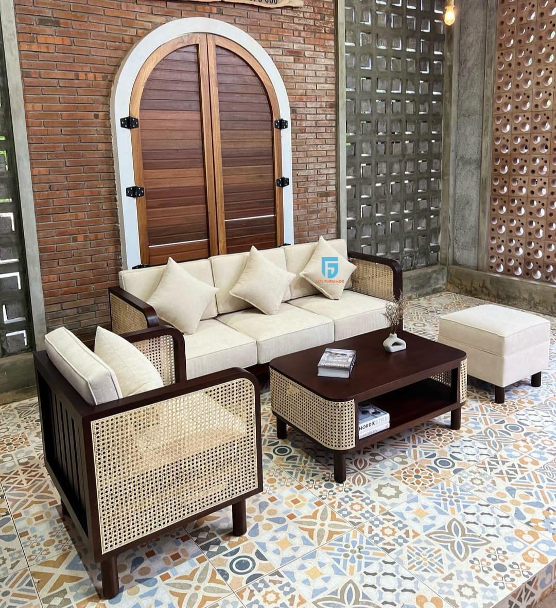 Sofa kombinasi rotan menawarkan tampilan yang unik karena menghadirkan nuansa alami sekaligus modern.